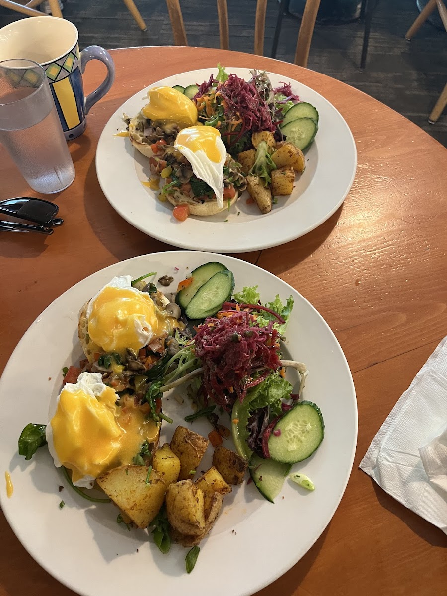 The food here is spectacular in general! The portions are generous, and the homemade jams, spreads, and sauces are SO GOOD! They share space with a wonderful bookstore, so save time for wandering the shelves. We had a Benedict and an omelet with a waffle. While the waffle itself wasn't special, everything else had us so happy.