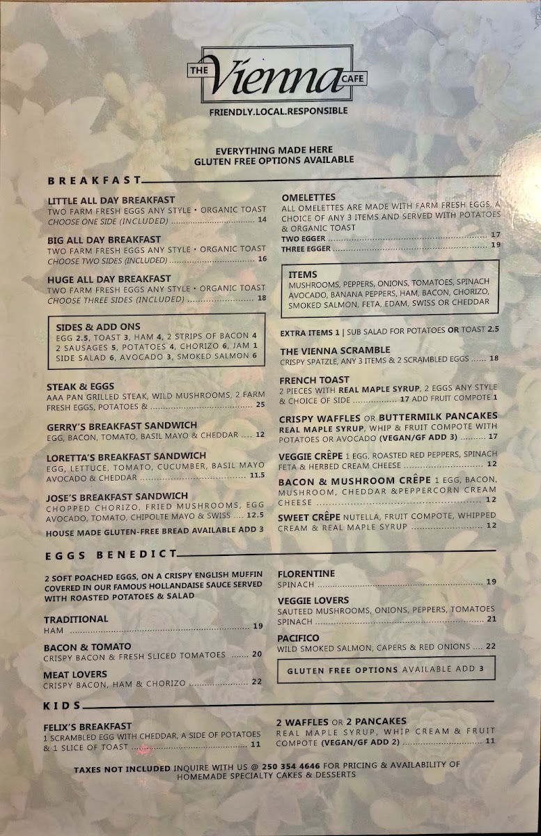 Breakfast enthusiasts will appreciate the Vienna Scramble and the indulgent Steak & Eggs, perfect for a leisurely brunch. The café prides itself on accommodating dietary needs with numerous gluten-free alternatives, enhancing its appeal. Customers rave about the welcoming atmosphere, making each visit a comforting experience. Book enthusiasts can browse while waiting, adding to the charm of this beloved spot. Overall, The Vienna Cafe promises excellent food, a relaxed vibe, and unforgettable flavors for all patrons.