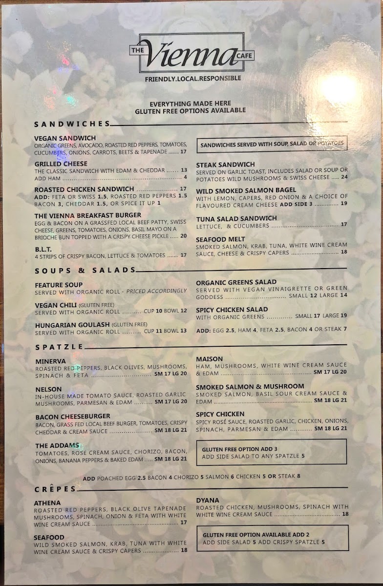 The Vienna Cafe, nestled at 411 Kootenay St in Nelson, BC, is a charming blend of a cafe and bookstore, offering a delightful culinary journey. Their menu boasts an impressive selection of Spatzle, featuring options like the enticing Smoked Salmon & Mushroom and the hearty Bacon Cheeseburger, all priced around CA$20. For crêpe lovers, The Vienna Cafe serves unique choices like the Athena and Seafood, ensuring a delectable array for every palate.
